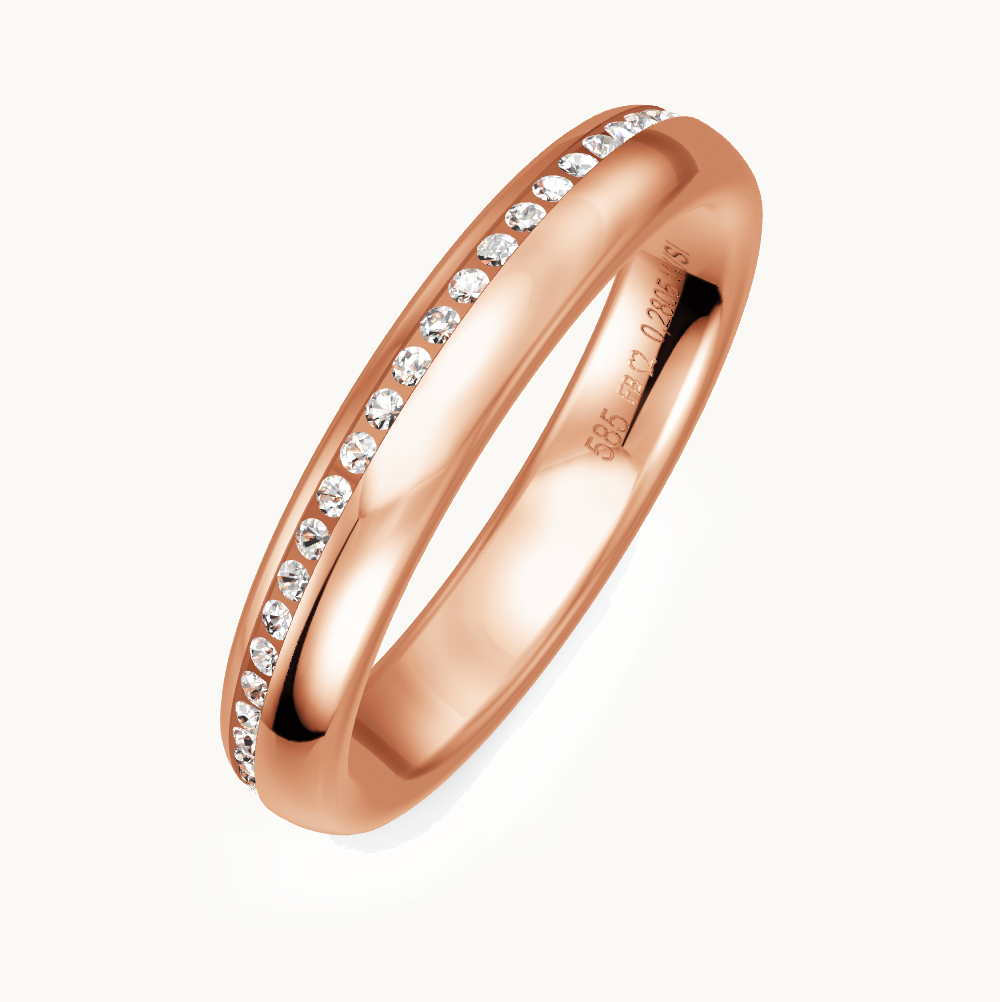 Luxuriöser, klassischer Rotgold-Trauring in poliert mit Brillantbesatz