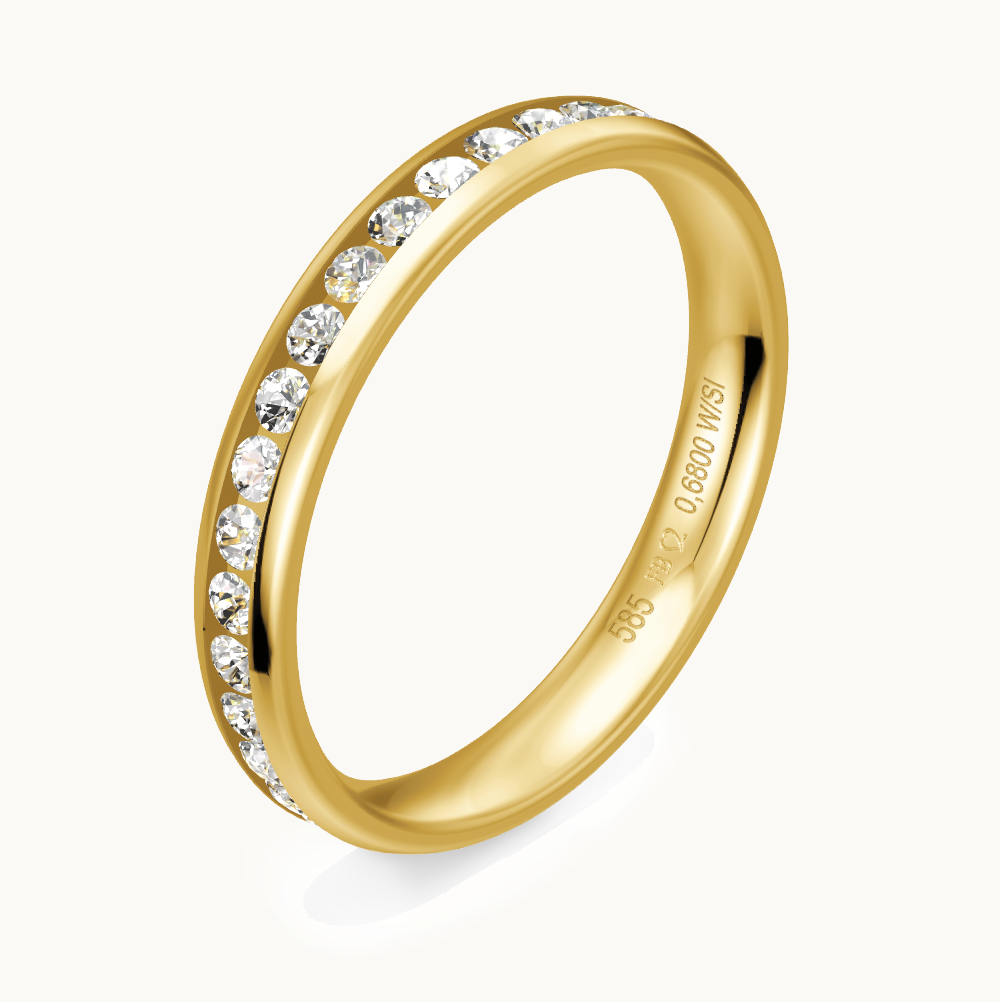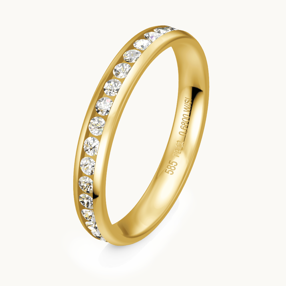 Anschmiegsamer, klassischer Gelbgold-Trauring in poliert mit Brillanten besetzt