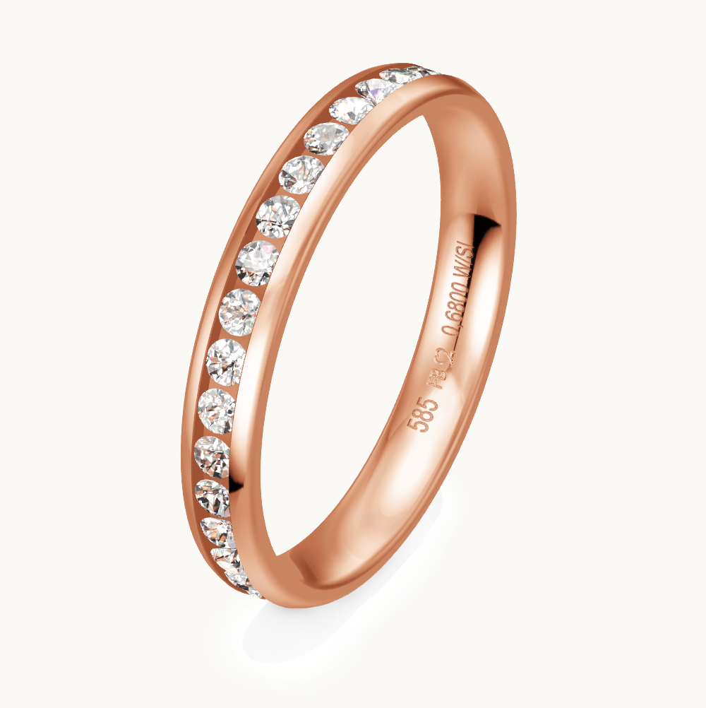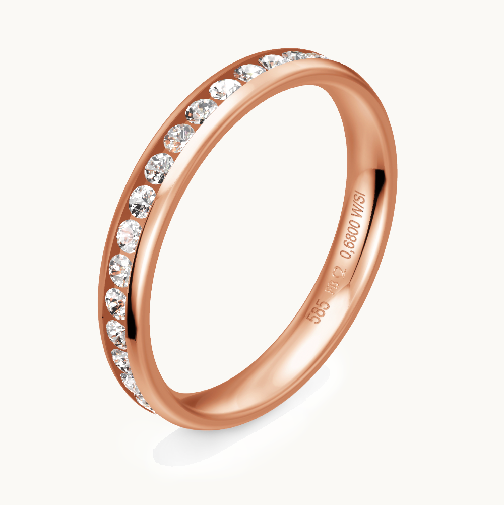Anschmiegsamer, klassischer Rotgold-Trauring in poliert mit Brillanten besetzt