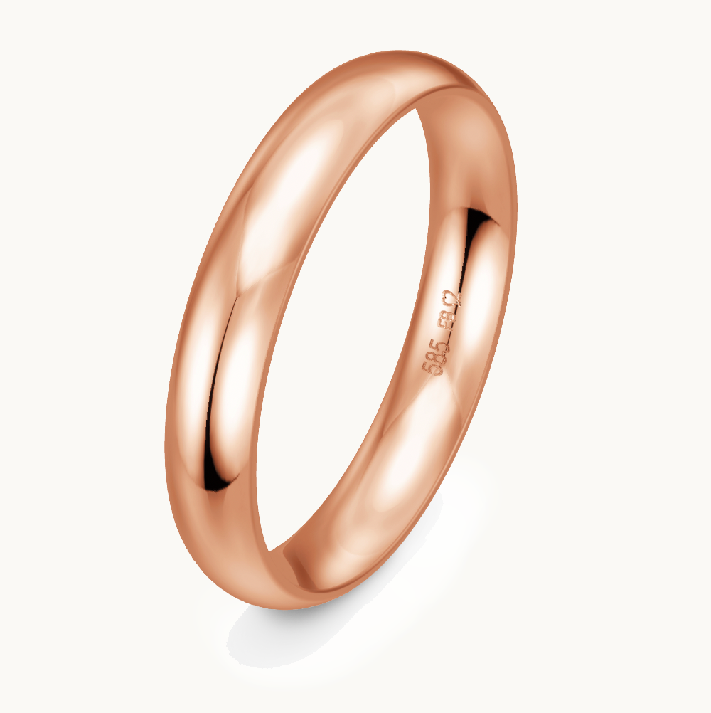 Komfortabler, klassischer Rotgold-Trauring in poliert