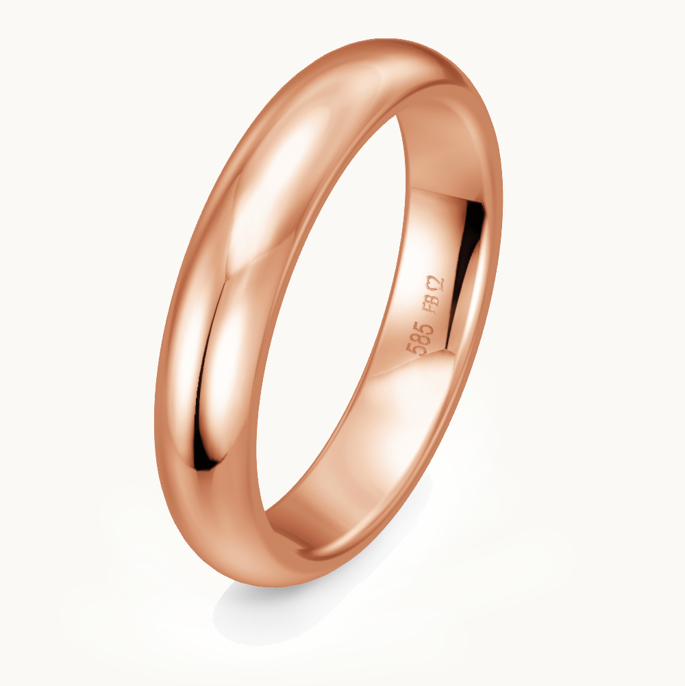Komfortabler, klassischer Rotgold-Trauring in poliert