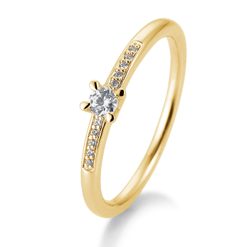Verlobungsring mit 11 Brillanten 0,15 ct., Gelbgold