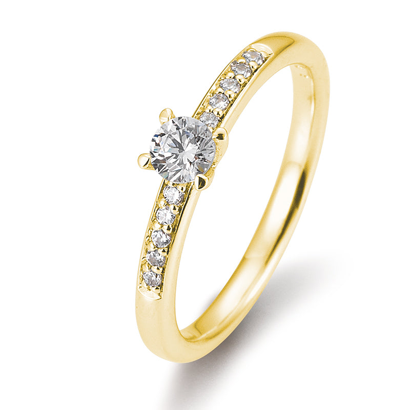 Verlobungsring mit 11 Brillanten 0,325 ct., Gelbgold