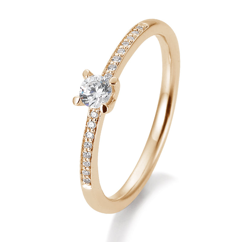 Verlobungsring mit 17 Brillanten 0,23 ct., Rotgold