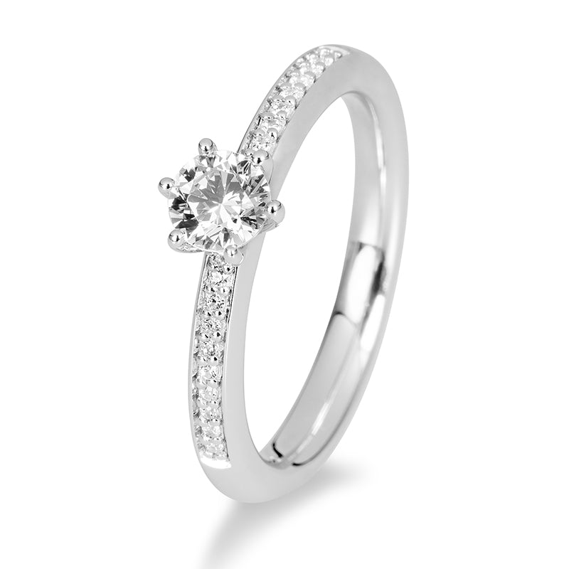 Verlobungsring Solitaire Pavé 6er Krappe Platin