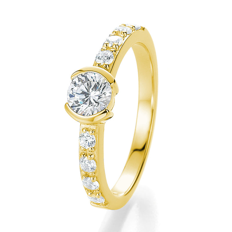 Verlobungsring Solitaire Pavé Zargenfassung Gelbgold