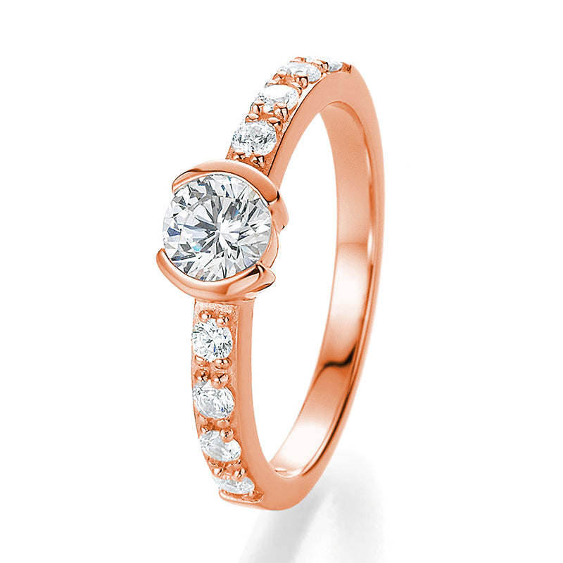Verlobungsring Solitaire Pavé Zargenfassung Rotgold
