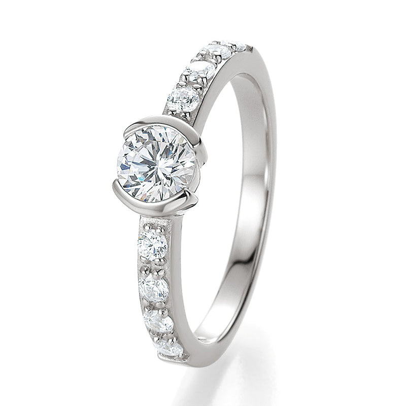 Verlobungsring mit 9 Brillanten 0,78 ct., Weißgold