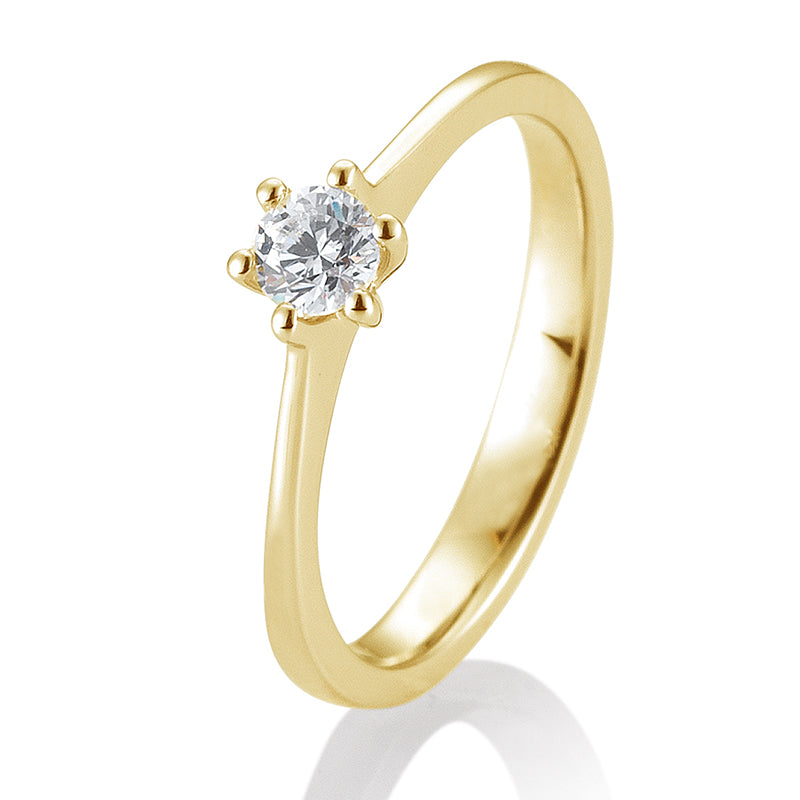 Verlobungsring mit einem Brillanten 0,30 ct., Gelbgold