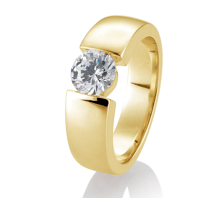 Verlobungsring mit einem Brillanten 1,00 ct., Gelbgold